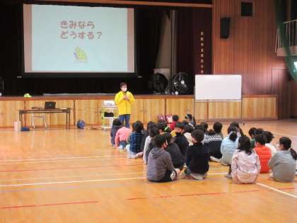 今日は「あんパトさん」が来られて安全指導をしてくださいました。自分の命を守るというお話の後に車から声をかけられたらどうするか考えました。