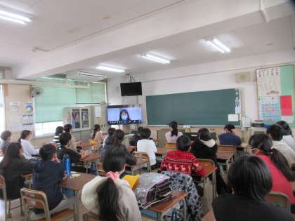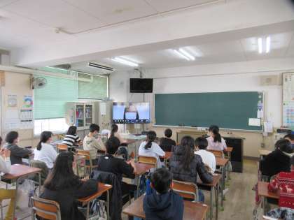 給食終了後2学期の終業式を行いました。今回の終業式はTeamsを使って教室で行いました。