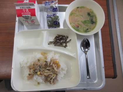 1/7 今日の給食 (正月の行事献立)れんこんのちらしずし(ごはん)