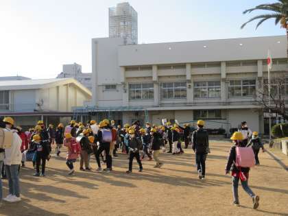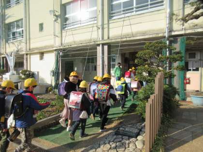 3学期初めての地区別集団下校です。今回は学期のはじめということで担当の先生方が近くまで送っていきます。