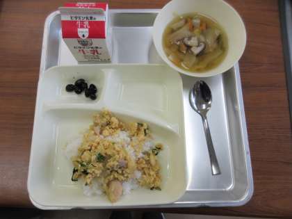 1/19 今日の給食 親子丼(ごはん)[個別対応献立(鶏卵)]