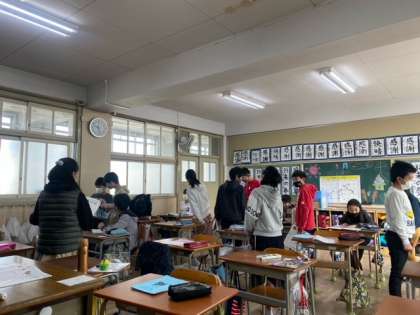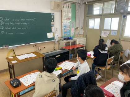 6年生の英語の学習の様子です。6年間の思い出を英語で伝えあう活動をしました。