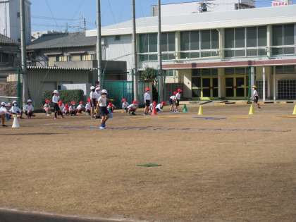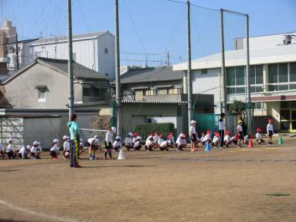 2年生の体育の学習の様子です。風は冷たいですが日差しは少し春めいています。