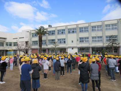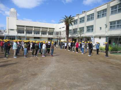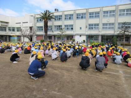 密を避けるために運動場で時間を短くして行いました。