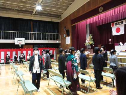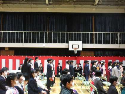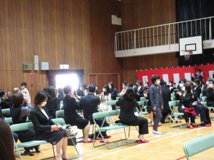 卒業生が入場します。少し緊張した表情です。