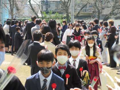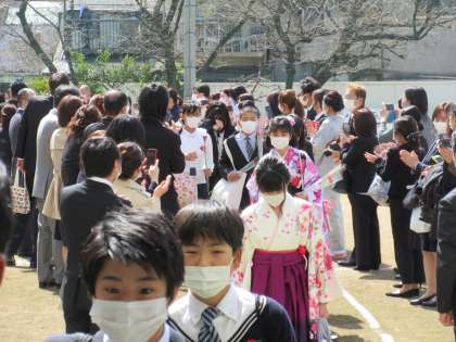 教室で担任の話を聞いてから保護者の方と教職員が見送りをしました。