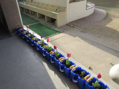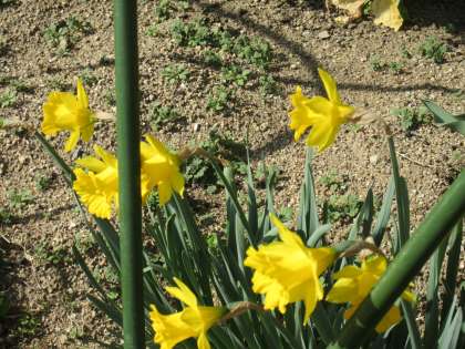 写真は学習園のスイセンと1年生が育てているチューリップです。