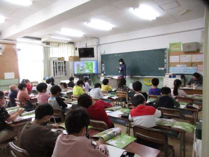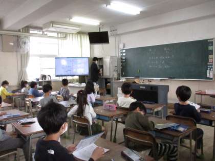 4年生の書写、3年生の理科、2年生の算数の学習の様子です。