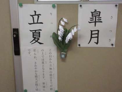 草木の緑がいっぱい、さわやかな風が感じられる季節になりました。5月5日は、二十四節気で「立夏」でした。夏の始まりの日です。まだ、本当の夏に比べたらずっと過ごしやすいですが、暦の上ではもう夏です。