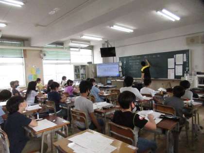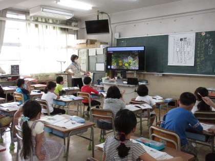 4時間目の学習の様子です。6年生の英語と算数、2年生の国語の学習の様子です。
