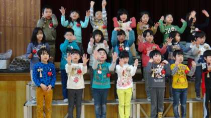 入学式では新2年生が新1年生を迎える演技を行っています。今日はその練習がありました。大きな声で歌やお迎えの言葉を練習していました。深江小の伝統でけん玉の演技も入れています。