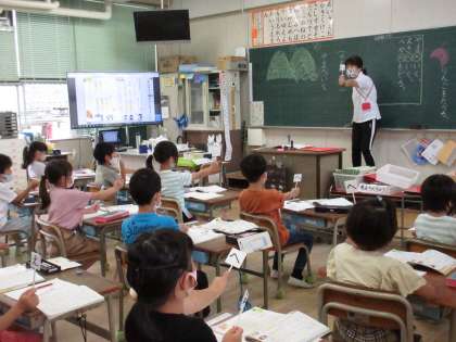 3年生の社会、1年生の国語の学習の様子です。