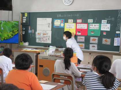 東成区の栄養教諭の先生に来ていただいて,6年生で栄養教育が行われました。