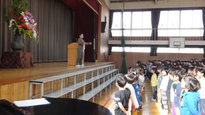 26年度修了式を1時間目講堂で行いました。校長先生や生活指導の先生の話を聞き、校歌を歌いました。教室で担任の先生から修了証をいただきました。2週間の春休みの後、新学期が待っています。