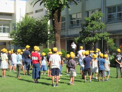 今日は月曜日ですが午後に終業式ああるので、ずっと雨のため延期されていた環境委員会の発表が行われました。