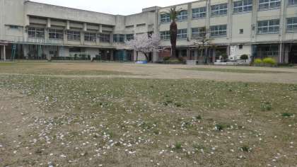あいにくの雨、桜の花びらが芝生の上に・・・・