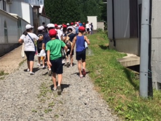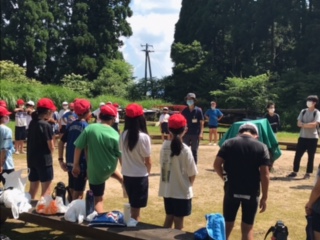 宿舎の近くの小川で魚つかみをします。やり方など注意を聞いてはじめます。