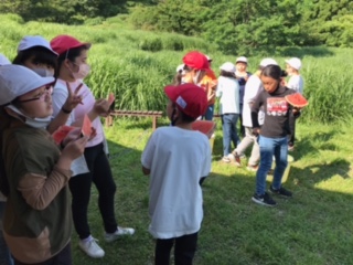 ? 焼き板のづくりが終わりおやつタイムです。冷やしたスイカを切っていただきました。