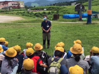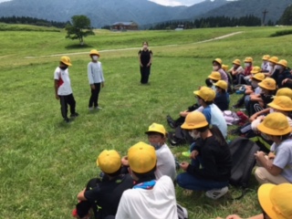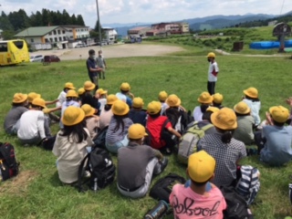 ? 2泊3日の林間学習もハチ高原での活動が終わり閉舎式です。児童からのお礼の言葉の後宿舎の方のお話を聞きました。