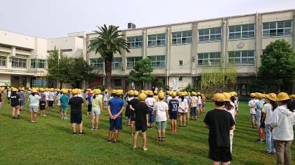 この前の朝会で「防災の日」のお話をしました。9月1日は「防災の日」と言って日本各地で防災訓練などが行われます。9月1日が防災の日となったのは1923年に関東大震災という大きな地震が関東で起こったからです。災害への心構えを忘れないようにするために「防災の日」は定められ、9月1日からの1週間が「防災週間」とされました。災害はいつやってくるかわかりません。いつも命を守るために行動できるようにしておかないとならないということです。