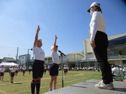開会式の様子です。「ちかいのことば」は4年生が担当しました。