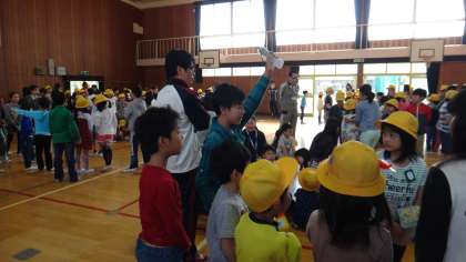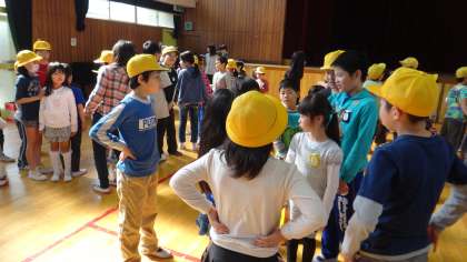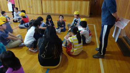 朝のふれあい集会の時間、初めての縦割り班で集まりました。1年生から6年生までそれぞれ自己紹介をし、集会委員会が出す「並び替えゲーム」を班長中心に答えていました。
