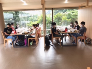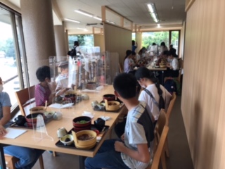 歩いてお腹もすきました。やっと昼食です。みんなでいただきます。