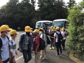せんぐう館に到着しました。雨も止みお天気になりました。