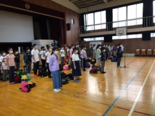 予定よりもかなり早くの到着でした。全員で振り返りをしたのちに帰校式が行われました。