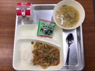 10/25 今日の給食 ピリ辛丼(ごはん)