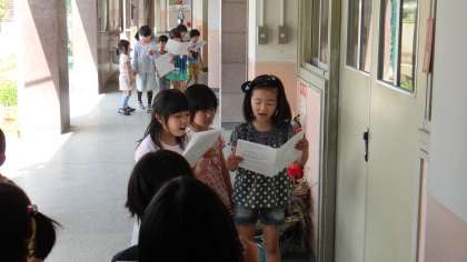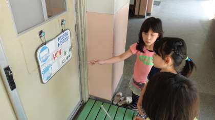 生活科の学習で1・2年生が学校探検をしました。1年生と2年生がペアになり2年生が職員室や理科室などの特別教室を1年生に紹介していきました。