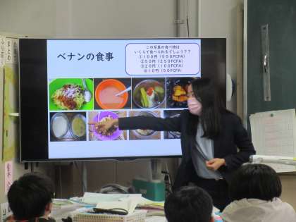 続いて、ベナン共和国での生活の様子や子どもたちの様子などわかりやすく教えていただきました。また活動されていた内容なども説明していただきました。