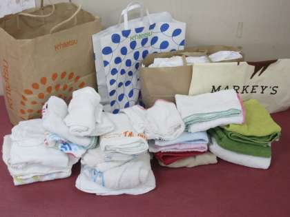 今週になって、ご家庭からたくさんのタオルを届けていただいています。ご協力ありがとうございます。とても助かります。