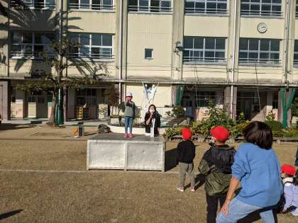 運動場で「あっちむいてほい」などみんなで楽しいゲームを計画・実施していただきました。良いお天気の下みんな楽しいひと時を過ごすことができました。