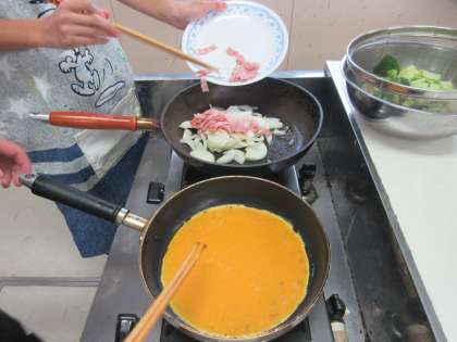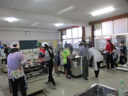 今日は6年生が家庭科の調理実習を行いました。メニューは「スクランブルエッグとベーコンポテト」です。みんなで協力しておいしく出来上がりました。