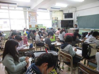 今日も引き続き学力経年調査が行われています。今日は算数と理科、5・6年生のみ英語の調査があります。