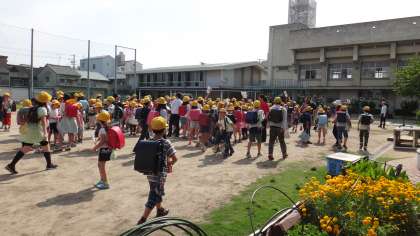 今日は地区別集団下校の日でした。6年生の地区長が1年生を迎えに行き、2年生から6年生は自分の地区のところに集まりました。まだ、なれない子もあり、少し時間がかかりました。防災上地区に集まることは大切なのでスムーズに集まれるよう毎月行っていきます。