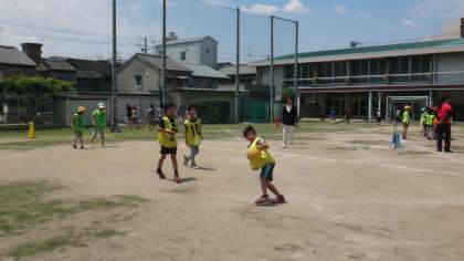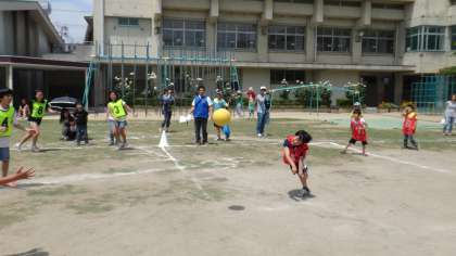 24日、校庭で子ども会の「ドッジボール大会」がありました。1年生から6年生までの多くの子どもたちが参加しました。逆手投球やボールを転がすなどのハンデをつけて学年対抗戦を行いました。子ども会の方々のほか、青少年2団体やPTAの多くの方の協力で楽しく大会ができました。
