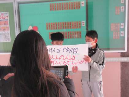 けん玉委員会の「けん玉クイズ」でした。みんなが楽しめるように工夫していました。