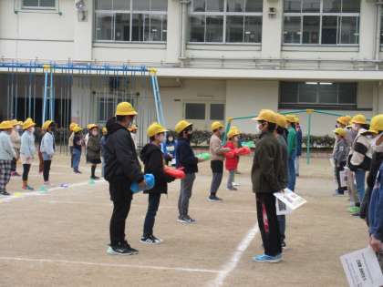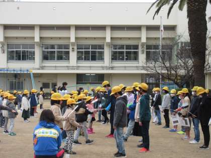 密を避けて運動場で間隔をとって会が催されました。短時間でしたが、みんなの感謝の気持ちが伝わるとても良い会でした。