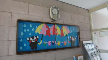 6月の玄関掲示は雨仕様です。5月下旬から天気がよく暑さが続いています。校庭に少し雨がほしいと感じます。