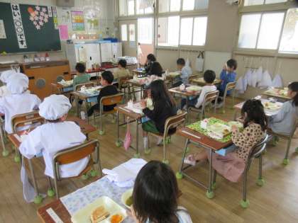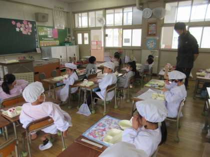 牛乳 黒糖パン マカロニグラタン レタスのスープ みかん(缶)