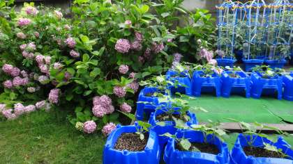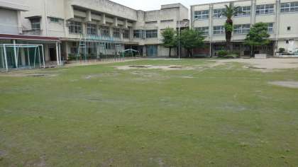 朝からの雨は午前中であがりました。ただ、運動場は今日、使用不可です。今日も縦割り班対抗つなひき大会が延期になりました。学習園では、1年生のあさがお、2年生のミニトマトが元気に育っています。