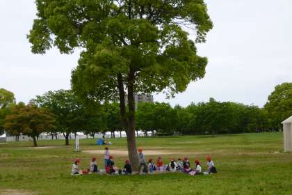午後からは、しばらく広場で遊び、遊具のある公園へ移動しました。