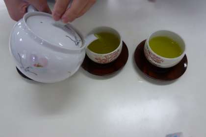 やかんでお湯を沸かし、急須に茶筒からお茶の葉を入れ、湯呑に順番に少しずついれていきました。