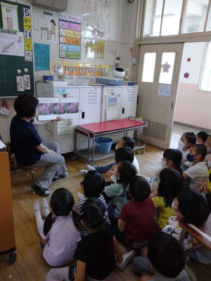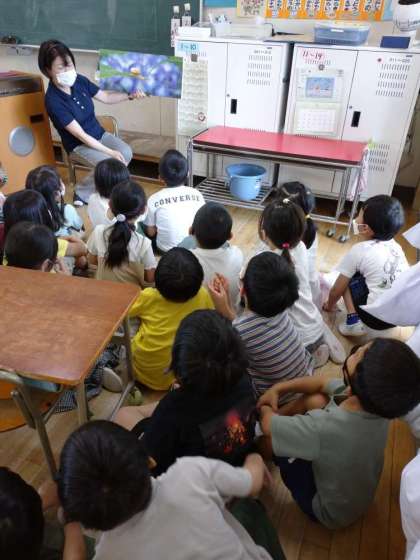初めにかたつむりの絵本の読み聞かせを聞いて、イメージをふくらませました。