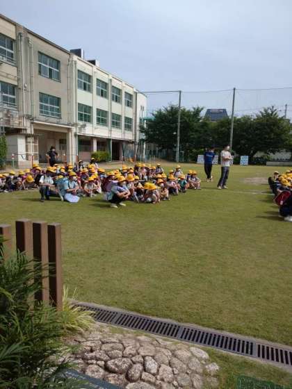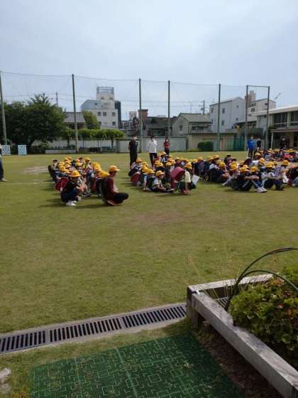5時間目終了後、運動場に地域ごとに分かれて集合しました。その後、6年生の班長や近くの友達と一緒に下校しました。