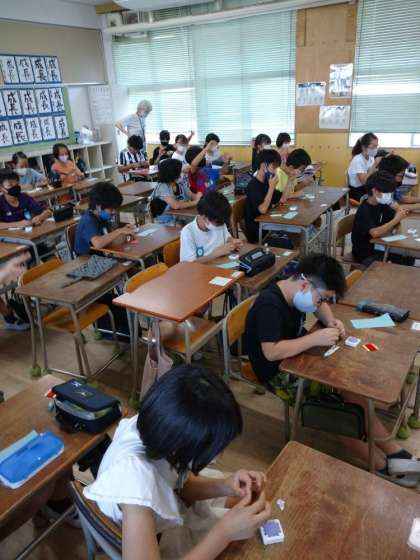 家庭科「初めてのソーイング」では、手縫いにチャレンジしています。