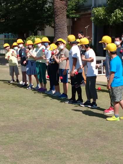 今日は学年ごとにけん玉のお題をクリアしてリレーをしました。1年生は大皿、6年生は世界一周です。