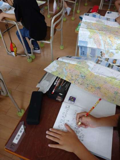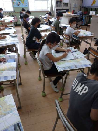 今日は、絵地図を調べながら、上町台地にある建物を探しました。